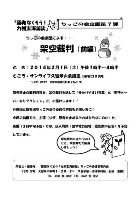 今回の前編では、主張(なぜ、原発を止めなければならないのか)を、後編(3月中旬予定)では、証人尋問(国や電力会社・原告側の証言)を予定しています。原発裁判のわからないこと、架空裁判で解消しましょう♪